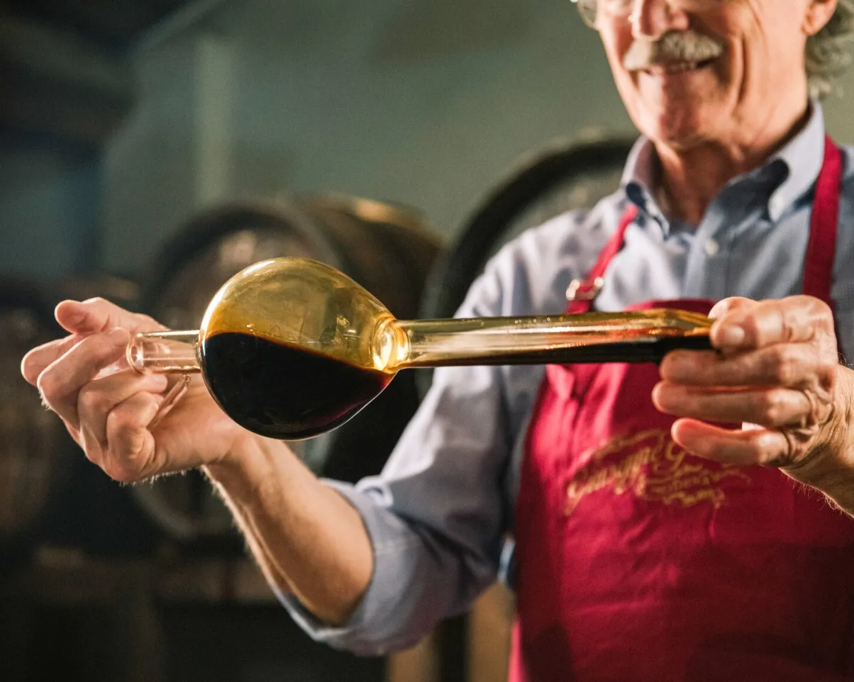 Jedes Jahr lagert dieser Essig dann in einem neuen Holzfass. Jedes hat ein Loch an der Oberseite, durch das der Balsamico atmen und verdunsten kann. Manche der Barriques sind hundert Jahre alt. Jedes ist aus einem anderen Holz hergestellt. So schenken die verschiedenen Holzaromen dem Balsamico im Lauf der Zeit seinen unvergleichlich komplexen Geschmack. Am Schluss ist der Aceto Balsamico wunderbar dickflüssig, intensiv aromatisch und herrlich natursüß.
