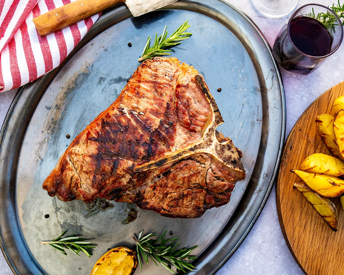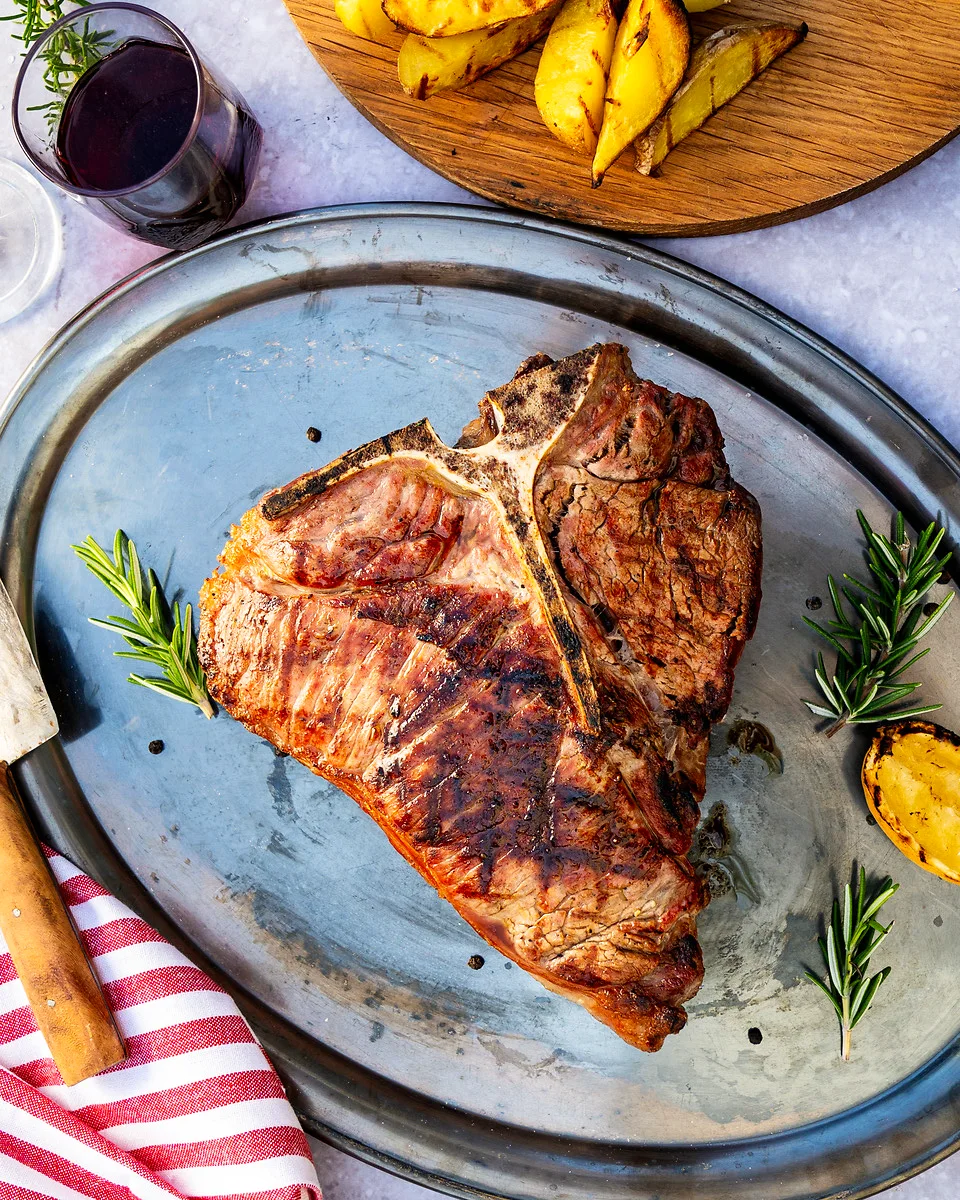 Viele verbinden die „echte“ Bistecca alla Fiorentina mit einem T-Bone-Steak, das Knochen, Roastbeef- und Filetanteil vereint. Doch da die Natur nicht nach Maß arbeitet, kann der Filetanteil auch einmal kleiner ausfallen oder ganz fehlen. Genau darin liegt die handwerkliche Tradition, wie sie auch in Florenz gepflegt wird – die Bistecca ist kein standardisiertes Produkt, sondern Ausdruck echter Fleischkultur.