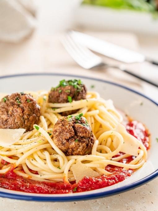 Spaghetti mit Polpette al sugo sind ein Rezept für das Herz und echtes Soulfood. Nur traditionell italienisch sind sie nicht. In manchen Ecken Italiens kann man die kleinen Fleischklößchen gelegentlich auf der Pizza oder in der Lasagne finden. Die Variante mit der Pasta ist aber eher ein Gericht der italoamerikanischen Küche. Italienische Immigranten kochten es Ende des 19. Jahrhunderts in New York. Serviert als Spaghetti meatballs, begann für die runden Frikadellen so eine steile Karriere auf den Tellern der USA und später auf der ganzen Welt.
