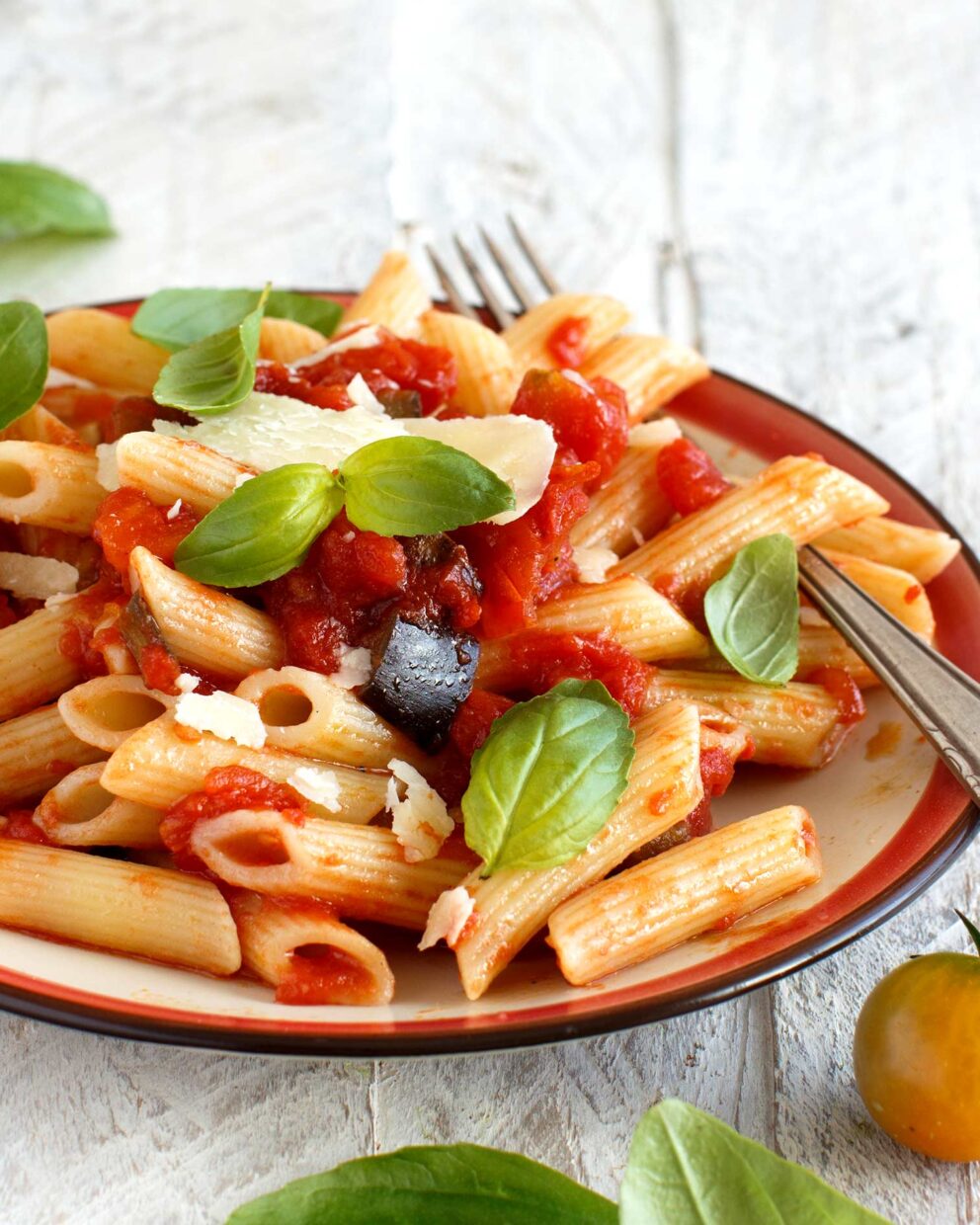 Das klassische Pasta-Rezept aus Sizilien. Mit Auberginen, Tomaten und Ricotta Salata. Einfaches Rezept, sehr lecker!