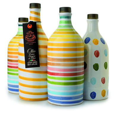 Olivenöl in bunten Keramikflaschen