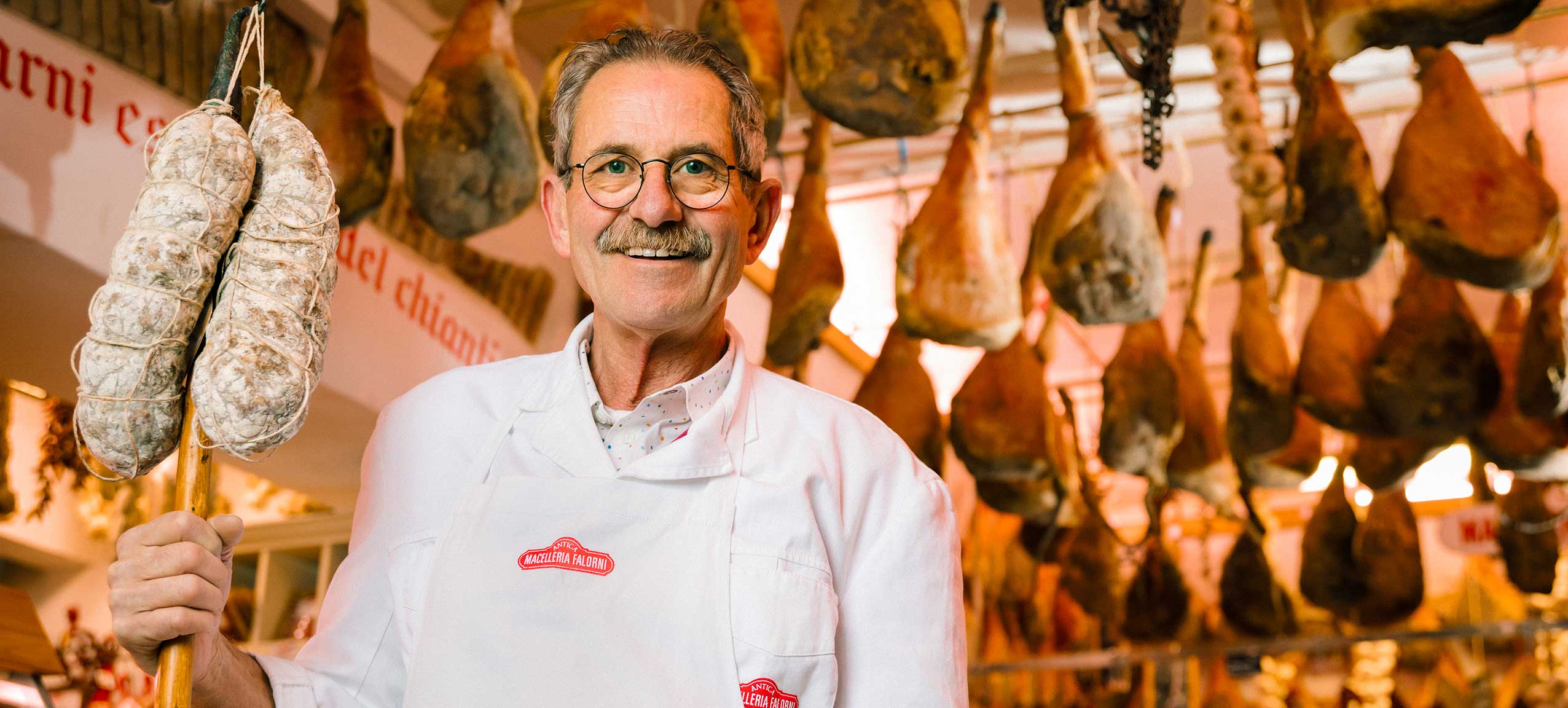 Die Antica Macelleria Falorni ist zweifellos ein Juwel der Toskana. Sie hat seit über zwei Jahrhunderten ihren Sitz an der malerischen Piazza des Städtchens Greve, das im Chiantigebiet in der Toskana liegt. Seit der Gründung im Jahr 1806 wurde dieser Familienbetrieb über acht Generationen von den Falornis geleitet.