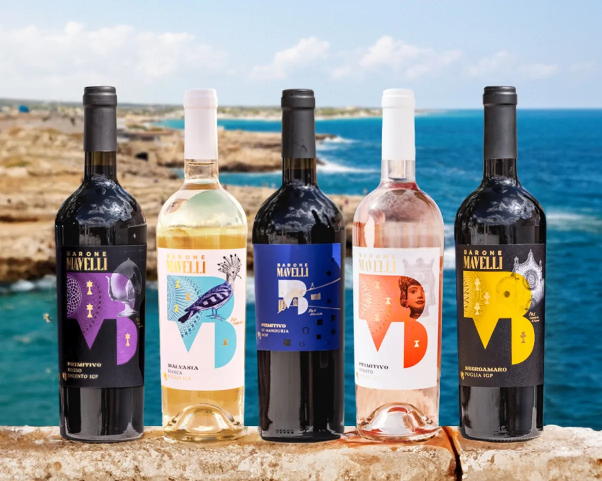 Alle Flaschen der Marke Barone Mavelli haben ein einheitliches Design, das den Spaß an den traditionellen Rebsorten modern interpretiert. Primitivo Salento IGP, Primitivo di Manduria DOP, Primitivo Rosato IGP, Negroamaro IGP oder der Malvasia bianca IGP - welcher wird Dein Liebling?