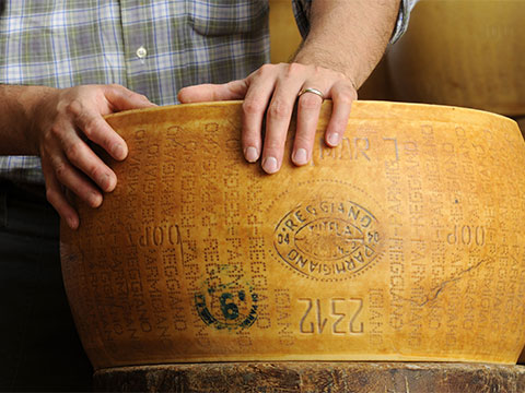 Ein dumpfes Klopfen durchbricht die Stille der gewaltigen Halle. Es ist kühl und das Licht versteckt sich scheu. Haushohe Regale reihen sich aneinander und laufen ins endlose. Ein gewaltiger, goldgelber Schatz lagert hier: Über 30.000 handgemachte Parmesan-Laibe.