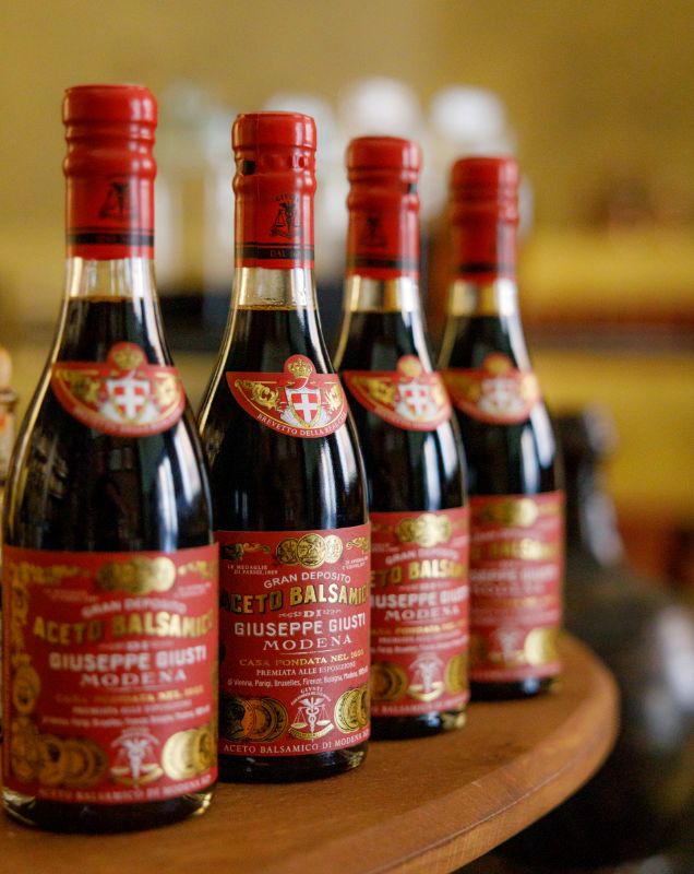 So beginnt die Geschichte des ältesten, renommiertesten und am meisten prämierten Balsamessigherstellers Modenas, Italiens und der Welt. Seither hat sich die Familie Giusti durch die Produktion eines Balsamessigs erster Qualität hervor getan, der während der Jahrhunderte Anerkennungen und Auszeichnungen aller Art bekommen hat: die Familie ist Autor des ersten dokumentierten Balsamessigproduktionsrezeptes überhaupt (1863), Gewinner von 14 Goldmedaillen auf verschiedenen Ausstellungen und Messen in ganz Mitteleuropa während der Belle Époque und schließlich seit 1929 Träger des Wappens des Königshauses Savoia – eine besondere Ehre, die mit dem Titel „Königlicher Hoflieferant“ einherging, der Giusti von König Vittorio Emanuele II. verliehen wurde. Deswegen ist Giusti der wichtigste Meilenstein in der Geschichte des Balsamessigs – nicht nur in Modena, sondern in ganz Europa.