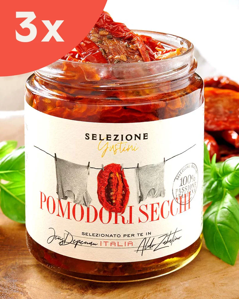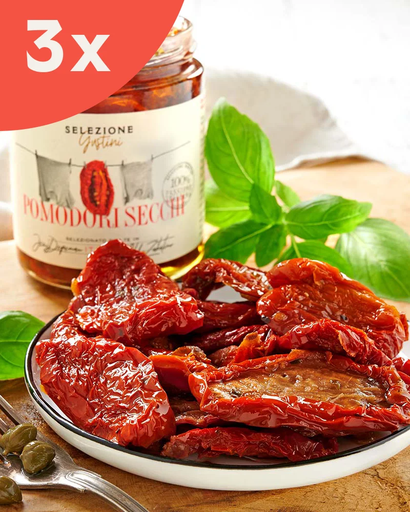 Die Pomodori secchi unserer Marke Selezione Gustini werden geschätzt für ihr intensives Aroma, den einzigartigen Geschmack und ihre leuchtend rote Farbe. Die süßen, saftig-weichen Leckerbissen schenken Saucen, Salaten, Pizzen und vielen typischen Primi Piatti diesen besonderen italienischen Pfiff.