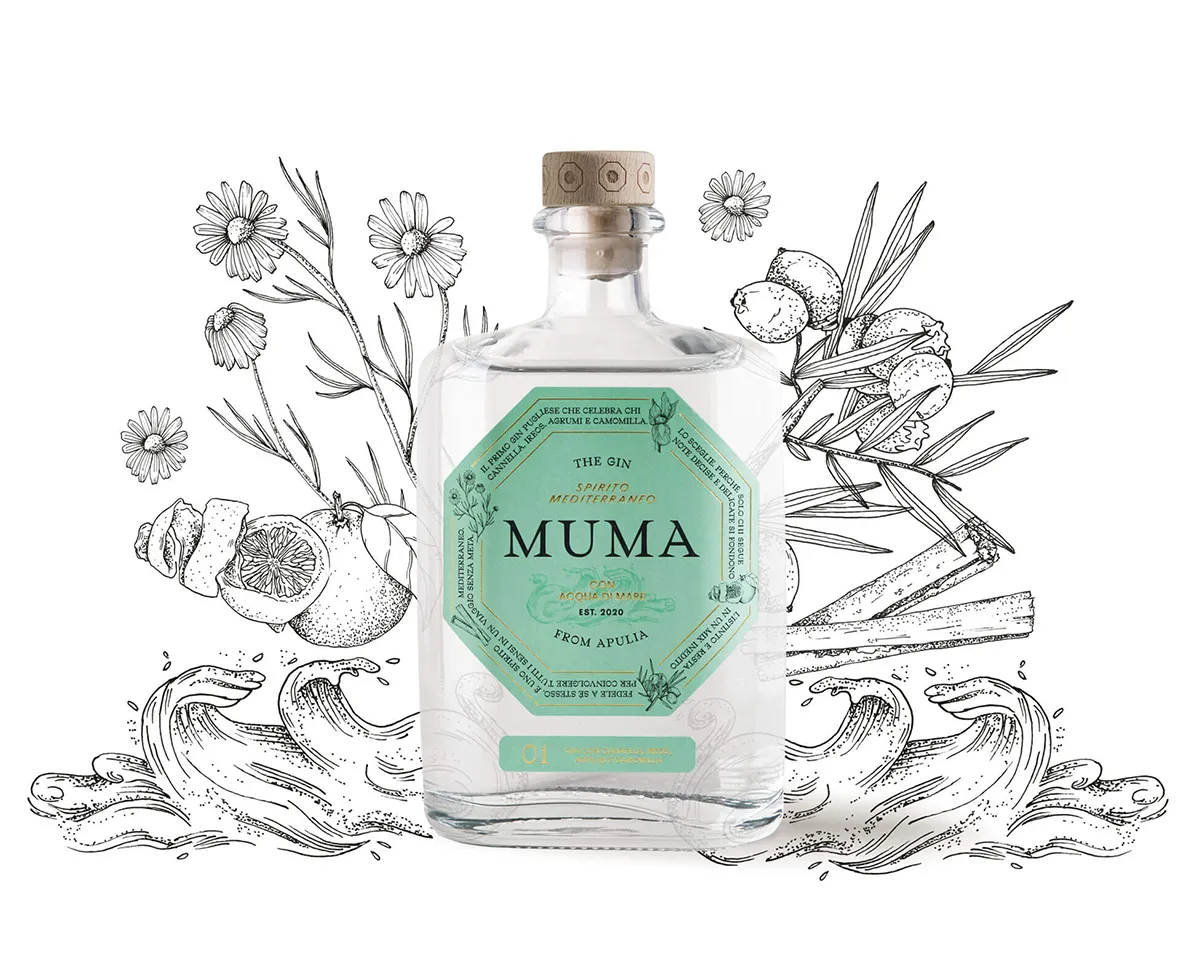 Der Geschmack von Muma Gin ist eine komplexe Mischung aus würzigen, fruchtigen und floralen Noten. Seine Macher setzen auf Botanicals aus Apulien. Die Zutaten wie Kamille, Schwertlilie (Ireos), Zitrone, Orange und Wacholder stammen aus nachhaltigem Anbau in der Region.