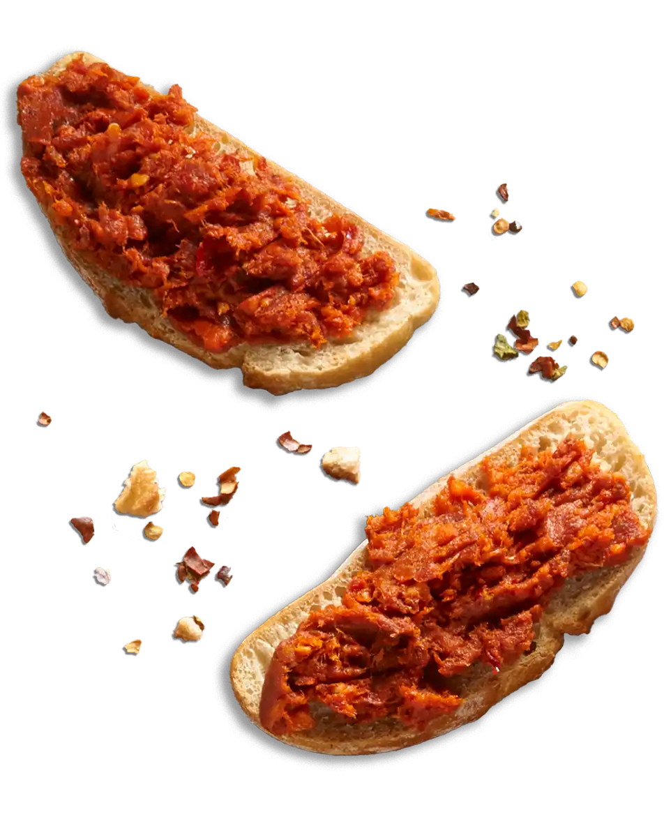 (30)Erlebe das fruchtige Feuer dieser außergewöhnlichen Salami-Spezialität aus Süditalien! Kräftig gewürzt mit tiefroten Chili und so voller Geschmack! Streich Dir die weiche Nduja auf knuspriges Brot - einfach himmlisch.