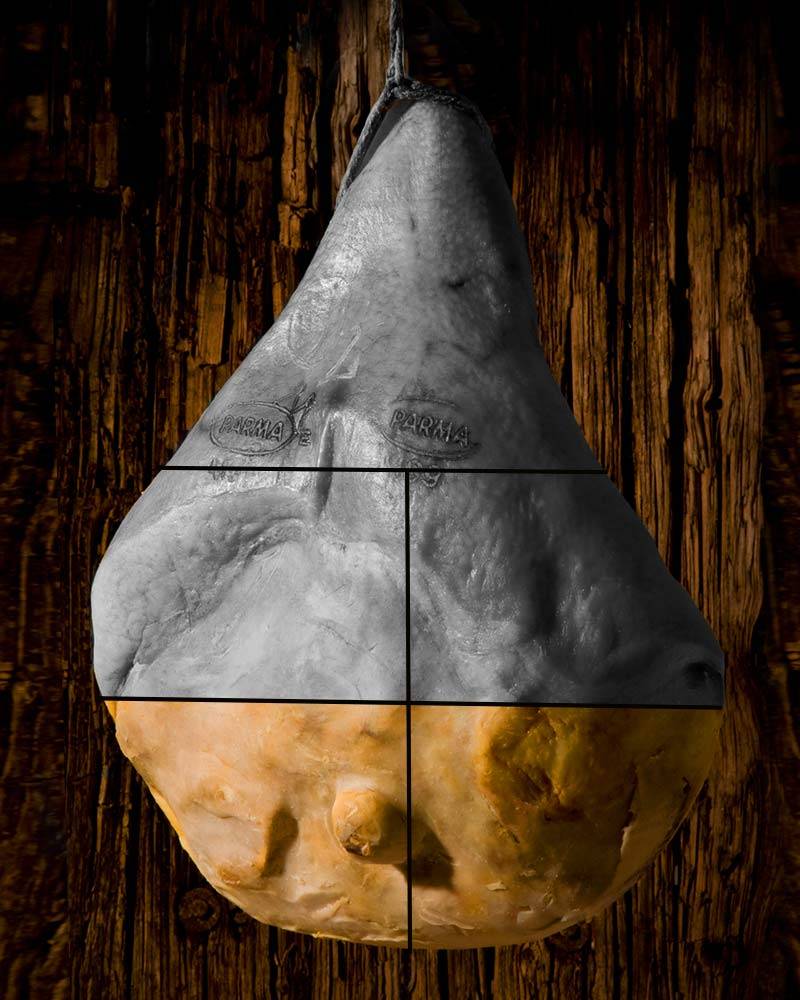 Nach 24 Monaten Reife wird dieses edle Stück sorgsam aus dem 'cuore', dem oberen Teil des ganzen Prosciutto di Parma geschnitten. Es ist ein schmackhaftes, besonders herzhaftes Segment des echten Parmaschinkens. Ideal für Panini.