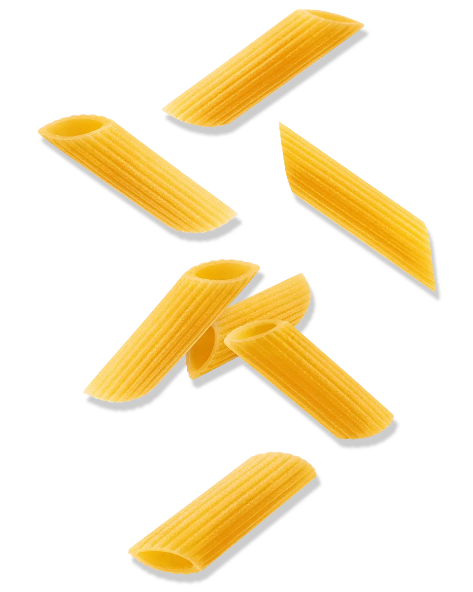 Die röhrenförmige Pasta hat schräg abgeschnittene Enden, die an Schreibfedern erinnern. Daher kommt der Name „Penne“, was auf Italienisch „Feder“ oder „Stift“ bedeutet. „Rigate“ bezieht sich auf die Rillenstruktur der Pasta, die dafür sorgt, dass die Sauce besser haften bleibt.