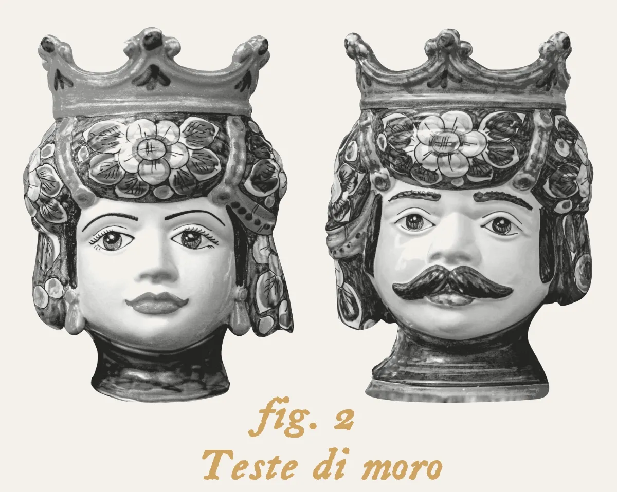 Apulien ist berühmt für seine Keramik. Allgegenwärtige Ikonen hier sind die Köpfe dieses Paares, glasiert in lebendig leuchtenden Farben. Sie sind Romeo und Julia der Antike: Ihre Liebe war groß und endete tragisch. Der Mythos der Teste di moro wurzelt tief im Gedächtnis Süditaliens. Heute sind die Köpfe Symbole der Fruchtbarkeit.
