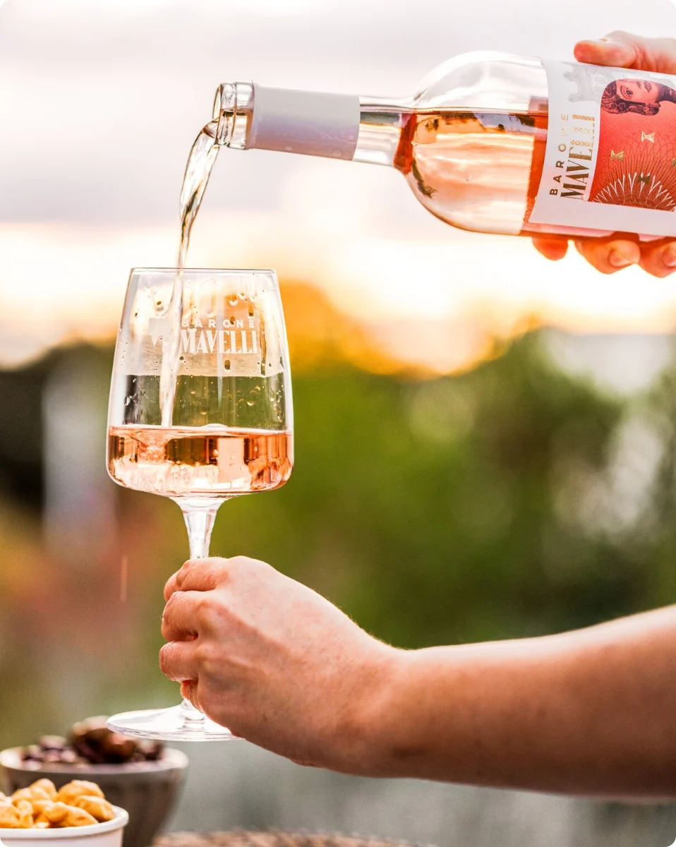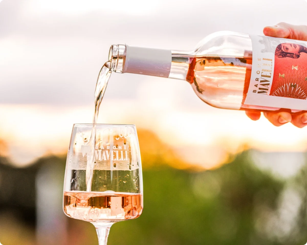 Der Roséwein von Barone Mavelli wird mit der sogenannten „Mazerations“-Methode hergestellt. Der Begriff „Mazeration“ beschreibt im Prinzip den Zeitraum in dem der Traubenmost mit den Traubenschalen gärt. Je länger der Kontakt, desto dunkler und intensiver der Wein. Bei einem Rotwein kann dies schon mal 2 Wochen dauern, bei einem Rosé hingegen teilweise nur einige Stunden. Aus der Schale lösen sich dann Pflanzenfarbstoffe, Gerbstoffe und die sog. Aroma-Vorläuferstoffe.