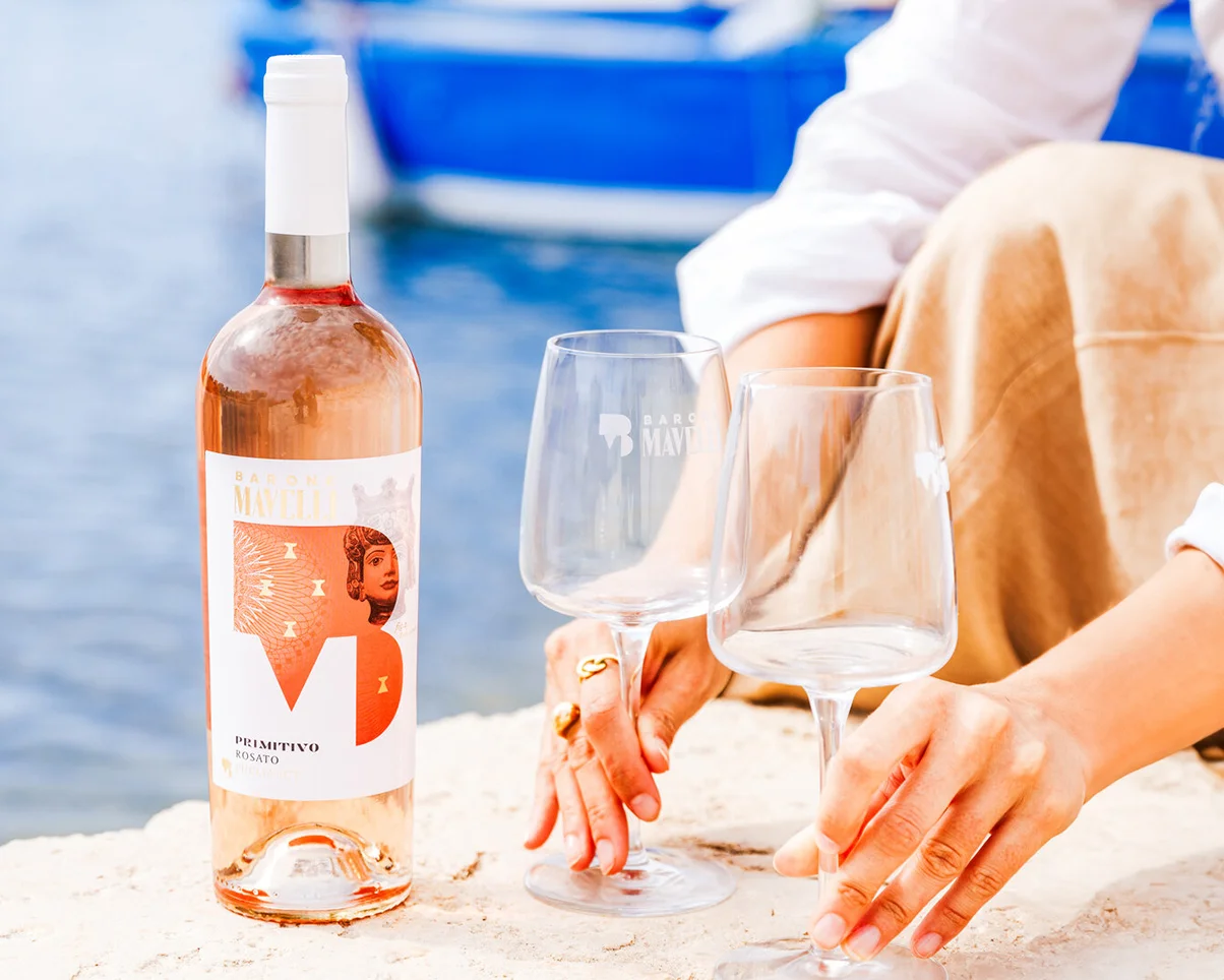 Genieße den leuchtenden Rosato, der dem Sommer Apuliens gewidmet ist. Verwöhnt von der mediterranen Sonne, reifen dort die Primitivotrauben heran. Der Kalkstein unter ihren Füßen schenkt dem Wein mineralischen Charakter. Der Rosato präsentiert sich vollmundig und harmonisch wie ein Primitivo. Seine feine Säure schenkt ihm fruchtig-frischen Charakter. Seine ideale Trinktemperatur liegt bei 10-12 °C.