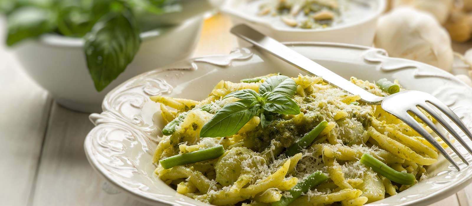 Berge und Hügel, die sich direkt am Meer aufreihen und eine eindrucksvolle und faszinierende Landschaft gestalten, das ist Ligurien. Es ist diese enge Beziehung zwischen Land und Meer, die die ligurische Küche und ihre Zutaten widerspiegelt: Olivenöl, Fisch und vor allem Kräuter. Basilikum, die Basis des berühmten Pesto, aber auch Petersilie, Salbei, Rosmarin gehören in jede Küche.